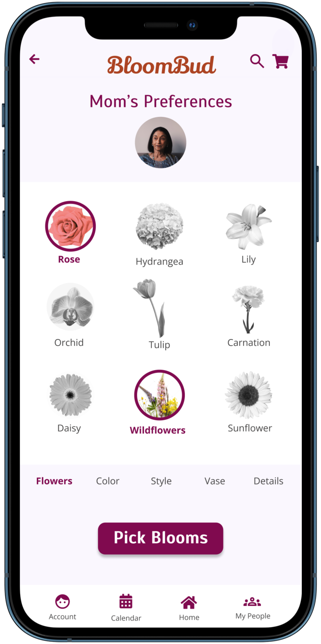 BloomBud is an app that makes the bouquet ordering process quick, easy and personalized for users.